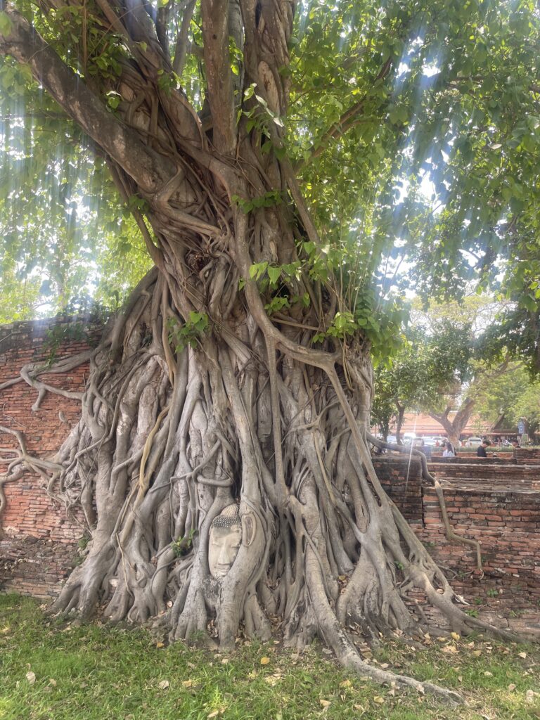アユタヤでは、世界遺産の「木の根に包まれた仏頭」を見た瞬間が強く残っています。
